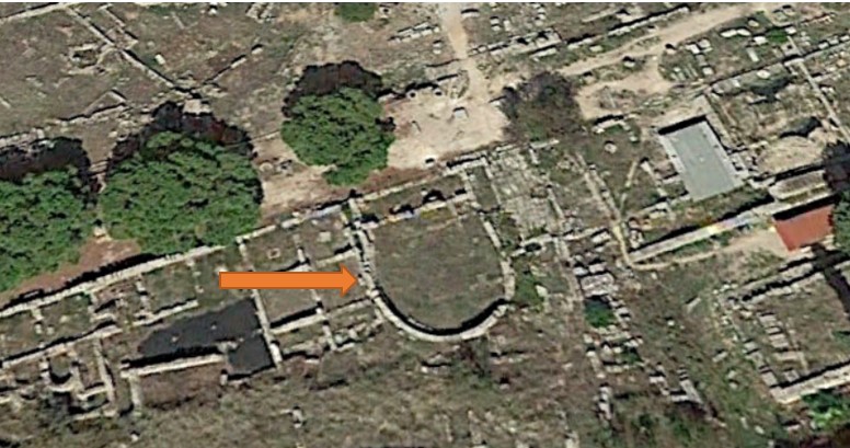 Consider the artifact that is considered to be the foundation of the ancient synagogue found in Corinth (the place where Pa’al spent time, and to whom he wrote two letters). Below is an aerial photo of the Greek section of ancient Corinth, and the circular foundation is believed to be the synagogue (a sign with ancient Ivriyt was found at this site).