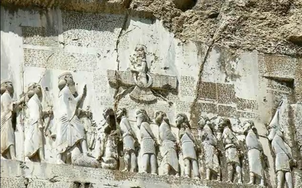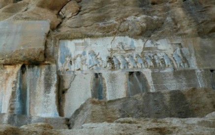 There is a most significant sculpture located at Mount Bisotoun. Kermanshah, Iran. This sculpture depicts the captivity of the Khumriym.